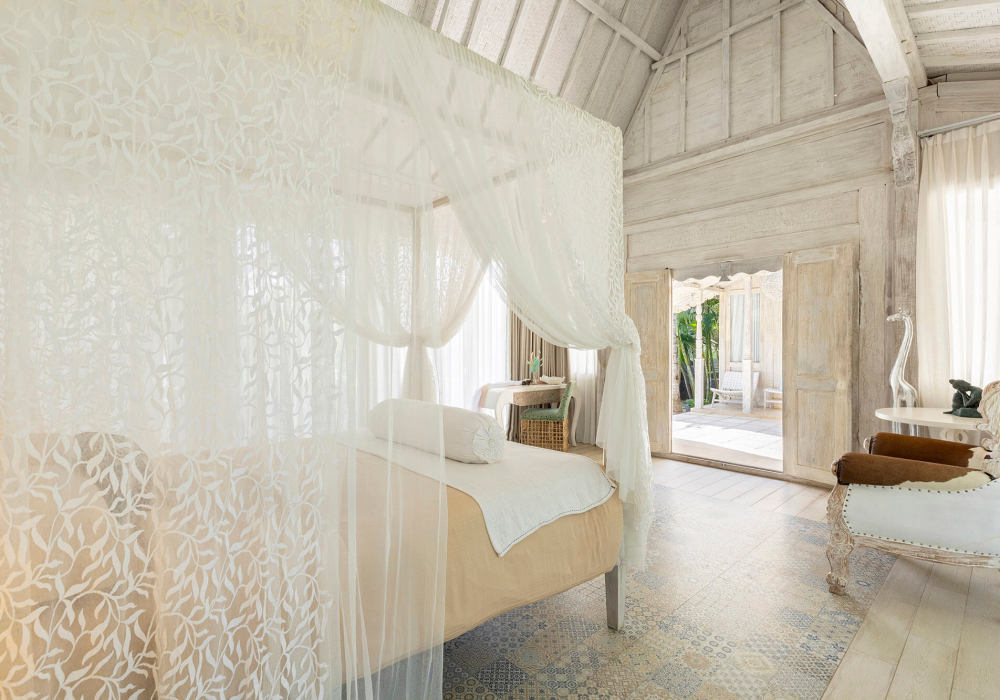 4 fully furnished bedrooms are situated just at the entrance court building on the second floor, to spare a private and intimate stay. 2 antique wooden javanese joglos are nestled amongst the romantic garden facing one another like the groom and the bride on the altar. The 4 bedroom apartments are equipped with a complete kitchen set up, the perfect solution to gather families to enjoy the experience with the same comforts as home.